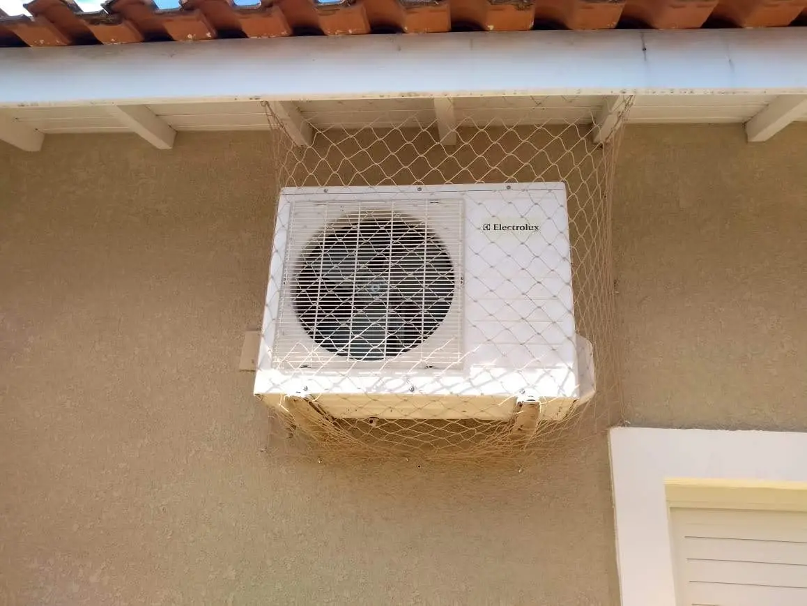 Proteções e enclausuramentos com redes para áreas técnicas de ar condicionado.